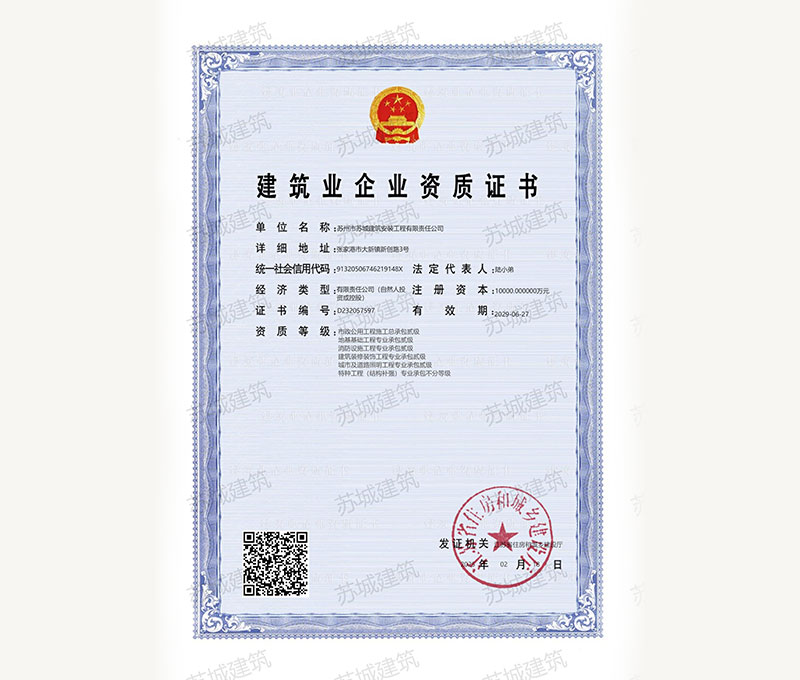 蘇州市蘇城建筑安裝工程有限責任公司是一家建筑業(yè)企業(yè),擁有房屋建筑施工總承包一級資質(zhì),